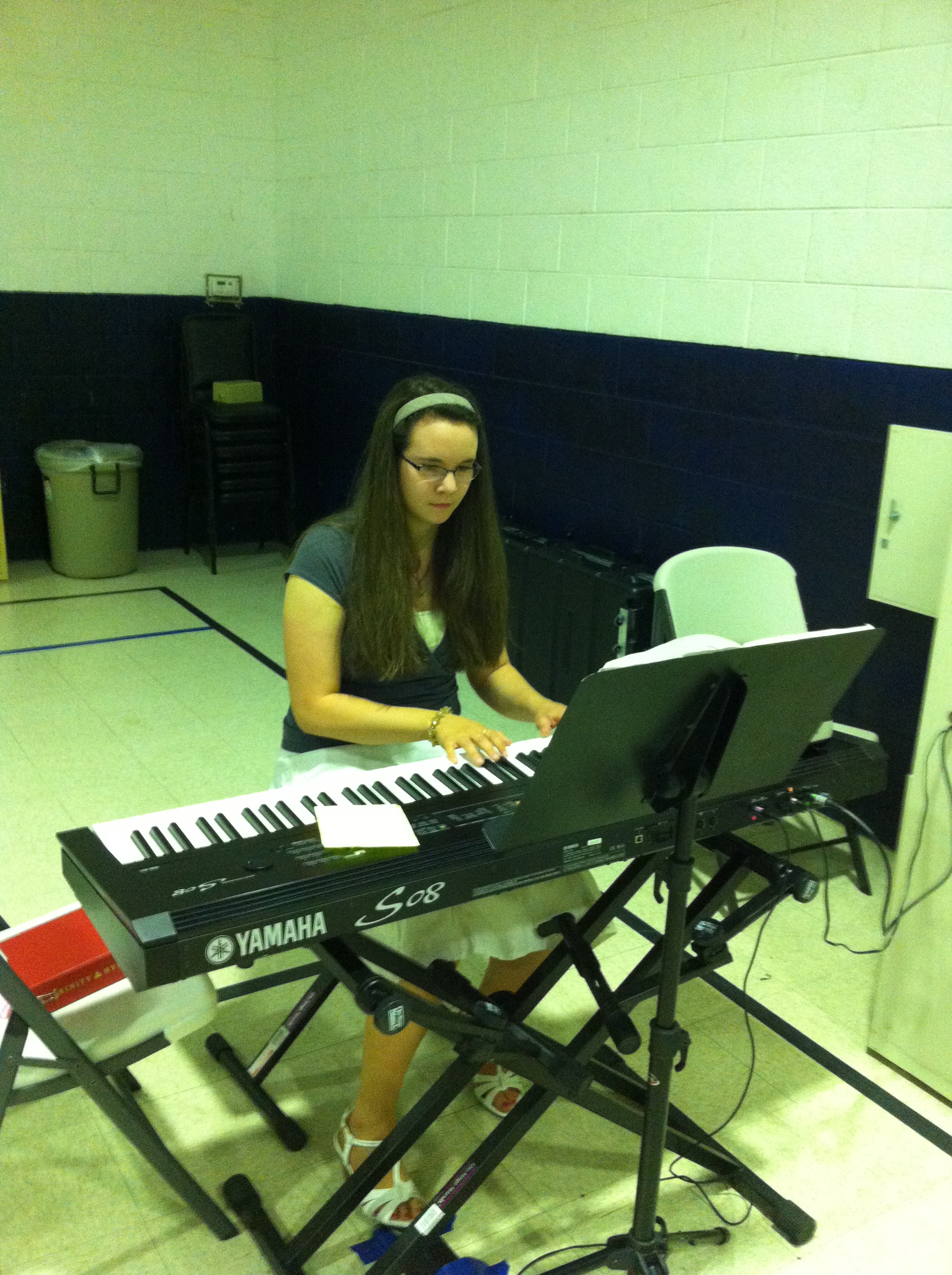 My gifted daughter, Abigail, fills in as pianist during morning worship at the Bedford YMCA.
