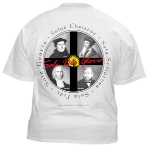 The following is from the About Us page at Fort Worth’s Theological Pursuits Bookstore owner David Jacks’ new website, ReformationShirts.Com. Get yours today! I’ve got three of them myself.