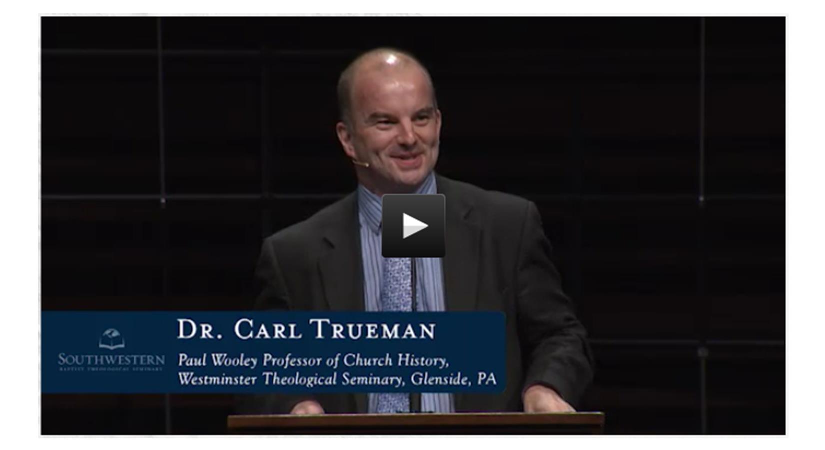 Yes, you heard that right. Dr. Carl Trueman was invited to speak in the chapel service at Southwestern Baptist Theological Seminary in Fort Worth, Texas yesterday. Seminary President Paige Patterson introduced Dr. Trueman as “my favorite Calvinist” for his activities as a “critic of the culture.” In the video of Dr. Trueman’s chapel sermon, you can see his friendly response in which he expresses his admiration for Dr. Patterson’s role in leading Southwestern and the SBC back to a more conservative theological position. Then he delivers a sermon on the advent of the prophet Elijah from 1 Kings 17:1-24 and proclaims the power of not only God’s Word, but also his holiness, his mercy and his power over death. My pastor, Joe Troutman, and I attended the service, got a bite to eat off campus while Dr. Patterson and his wife hosted Dr. Trueman for lunch (oh, to be a fly on the wall of that conversation!), gave him a tour of the campus, after which Mid-Cities Presbyterian Church officially took possession of him in preparation for tonight’s OPC DFW Reformation Conference 2014 on the role of creeds and confessions in the Protestant Reformation and their benefit to the life and worship of the church today. If you haven’t already registered, it’s not too late. Pictures and audio to follow on this blog in the coming days.